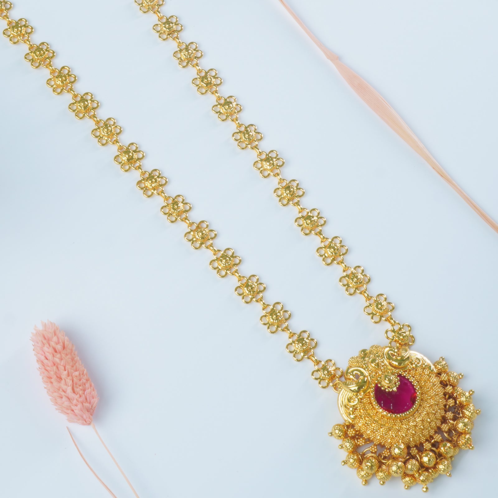 28 Inches Long Bakuli Haar Necklace With Gold Like Peacock Pendant